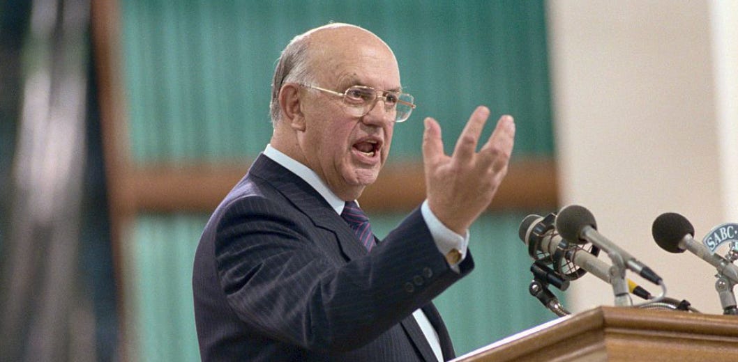 The three houses were, explicitly, for Whites, Coloureds, and Indians. Their own Congresses! Each named group was accountable for its “own affairs,” meaning education, housing, and local government. In his inaugural address, Botha got religious, explaining that God put the white people into Africa to serve a divine mission.