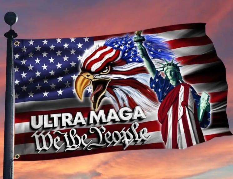 These days, I often keep my distance from automobiles with a stylized version of the American flag on a window sticker. American flags in the wild tend to make me suspicious.